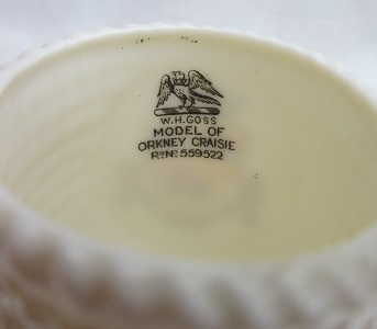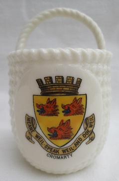 For many decades, between the late 1800's to the late 1920's, it was popular for holidaymakers/day trippers to purchase a piece of crested china as a memento of their trip. Scores of companies, many from Europe, produced a plethora of small ceramic items of all imaginary themes and designs adorned with a town's coat of arms. Over the years these items have become a collecting passion for many people as they strive to collect all designs from a particular location or items of a particular theme. This piece we have is in the form of an Orkney Craisie with a hand coloured transfer of the coat of arms for Cromarty. It is in perfect condition. The black ink maker's mark is for WH Goss. A great item for a crested china collector, for someone with a connection to Cromarty or as a decorative piece.