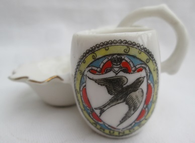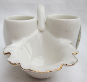 For many decades, between the late 1800's to the late 1920's, it was popular for holidaymakers/day trippers to purchase a piece of crested china as a memento of their trip. Scores of companies, many from Europe, produced a plethora of small ceramic items of all imaginary themes and designs adorned with a town's coat of arms. Over the years these items have become a collecting passion for many people as they strive to collect all designs from a particular location or items of a particular theme. This piece we have is in the form of a shaving pot(?) with a hand coloured transfer of the coat of arms for Arundel. It is in good condition with a single minute chip on the underside of the bowl which is hardly noticeable and some of the gilding around the edge has rubbed in places. The green maker's mark for Gemma is on the base. A great item for a crested china collector, for someone with a connection to Arundel or as a decorative piece.