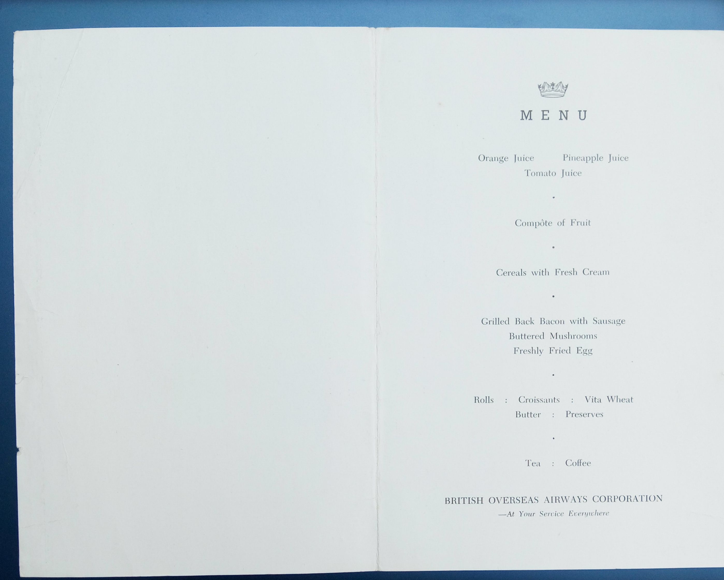 As a piece of ephemera, its survival is remarkable. This menu was designed to be used by a passenger, to be marked and handled before being discarded after the flight. Because of this, very few of these menus have survived the decades, making this one a truly exceptional find.