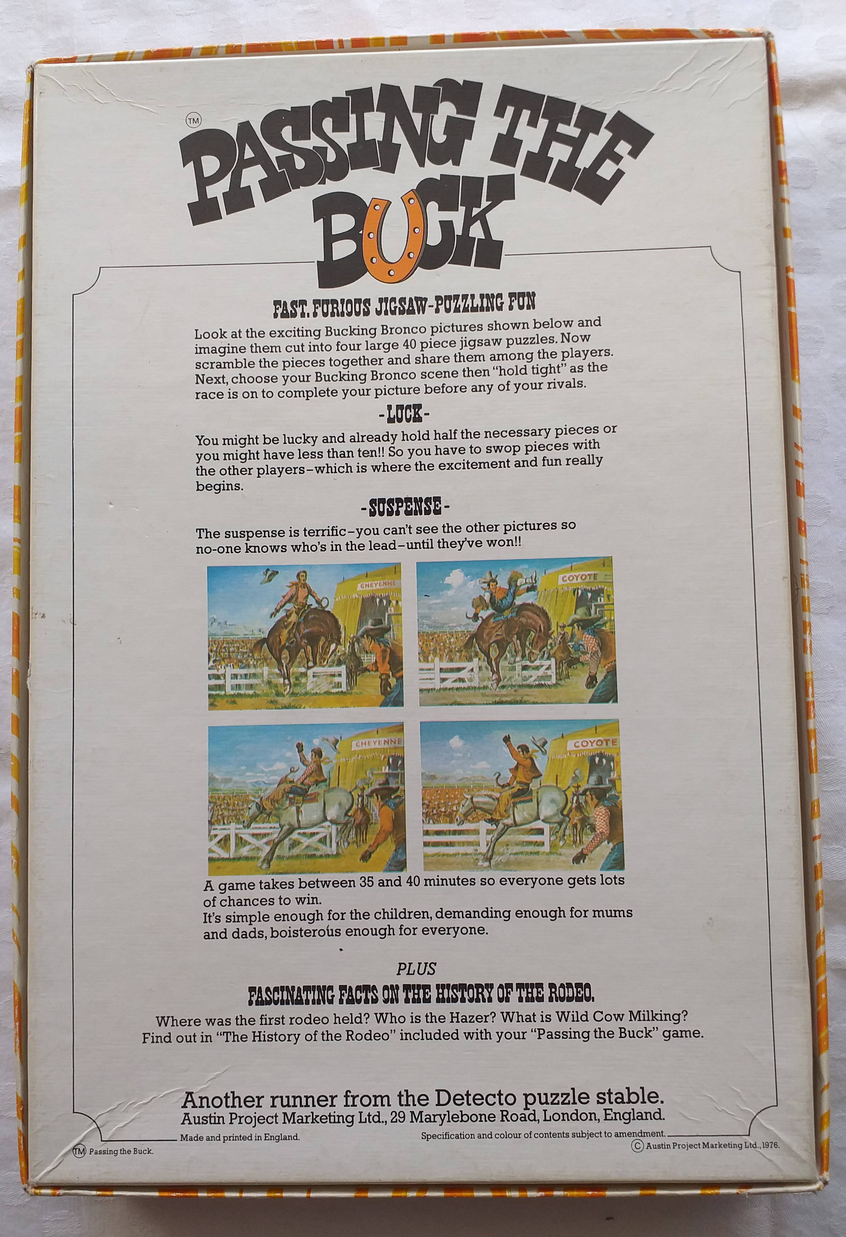 Whether you're a vintage game enthusiast, a Western aficionado, or just looking for something fun and different, "Passing the Buck" delivers a rootin’-tootin’ good time for 2–4 players. Don’t miss your chance to own this rare and charming piece of puzzle history!