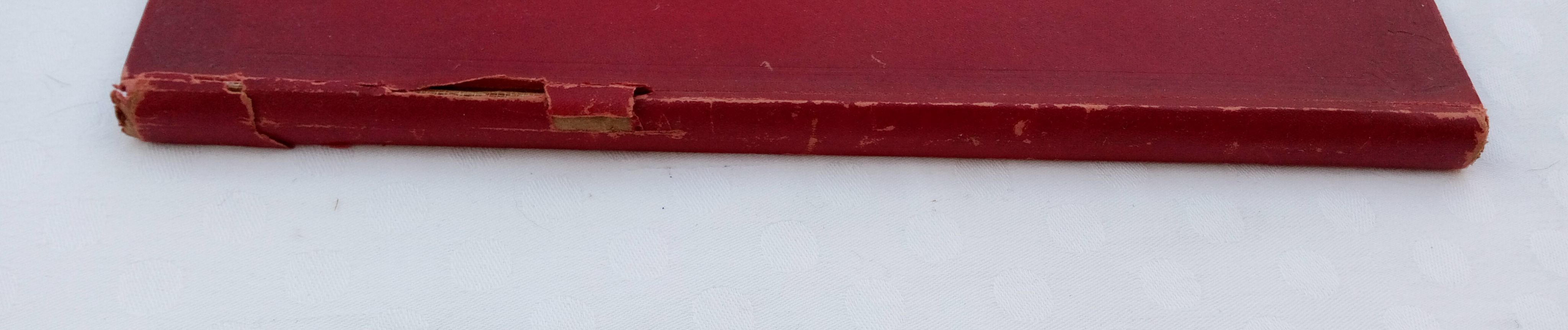 The book’s cover, a deep maroon, is embossed with the title in stunning gold gilding, a testament to its original regality. While time has left its mark—the edges and corners are gently rubbed, a touch of discolouring is present, and the spine shows some surface damage—these imperfections only add to its charm and story, whispering of the years it has survived.