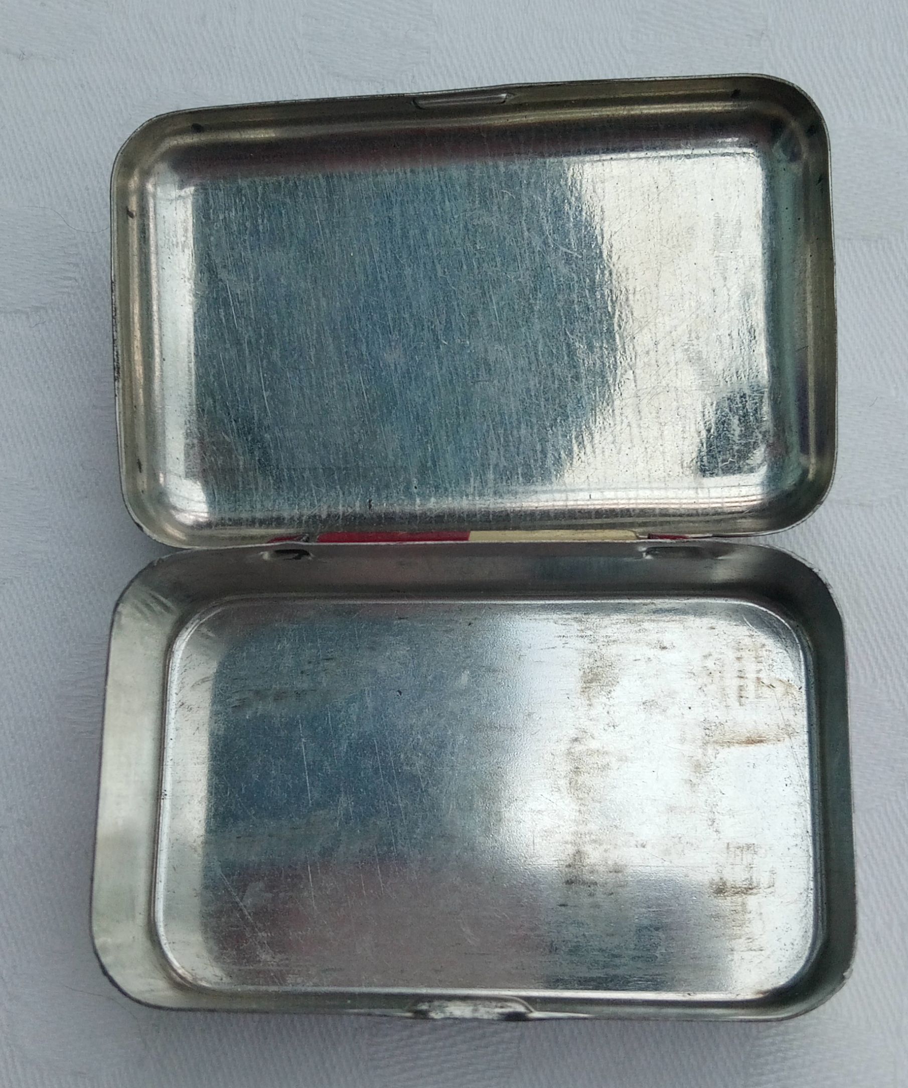 Crafted from thin metal, the tin's condition is remarkably good for its age. While it carries the mark of time - a few heavy scratches on the underside - the overall aesthetic remains intact. The hinge is fully functional, ensuring that this piece is not just for display, but can be a practical and cherished part of your collection.